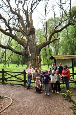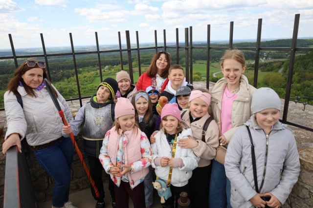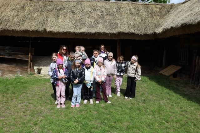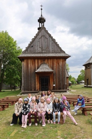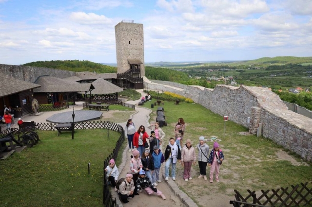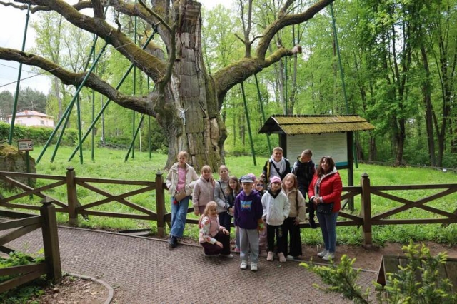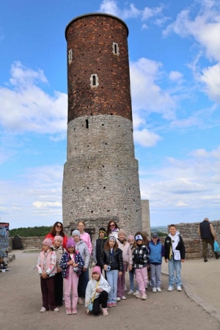 Na początku naszej wyprawy odwiedziliśmy Zamek w Chęcinach, gdzie mieliśmy okazję zwiedzić starożytne mury i podziwiać piękne widoki z zamkowej wieży. Następnie udaliśmy się do Muzeum Wsi Kieleckiej – Parku Etnograficznego w Tokarni, gdzie mogliśmy zobaczyć ekspozycje budownictwa wiejskiego, małomiasteczkowego i dworskiego. To było świetne doświadczenie, bo dzieci miały okazję poczuć klimat dawnych czasów i zobaczyć, jak wyglądało życie naszych przodków.Kolejnym punktem naszej wycieczki była Jaskinia Raj – jedno z najbardziej znanych i pięknych miejsc w regionie. Podczas zwiedzania mieliśmy okazję podziwiać niezwykłe formacje skalne, takie jak stalaktyty i stalagmity. Zwiedzanie jaskini dostarczyło nam niezapomnianych wrażeń.Po intensywnym zwiedzaniu nadszedł czas na zakup pamiątek, które będą przypominały nam o tym wyjątkowym dniu. Potem udaliśmy się na obiad, który był miłym zakończeniem części kulturalnej wycieczki.Po posiłku pojechaliśmy do Zagdańska, aby zobaczyć słynny pomnik przyrody – Dąb Bartek, który był ostatnim punktem zwiedzania.Wycieczka była dla nas nie tylko świetną okazją do nauki i poznania nowych miejsc, ale także do wspólnej zabawy i integracji. Wszyscy wróciliśmy zmęczeni, ale szczęśliwi i pełni pozytywnych wspomnień.