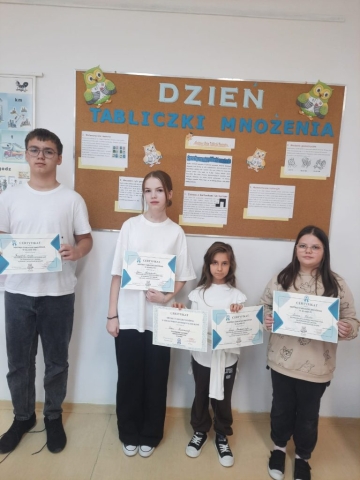 Szkoła od kilku lat systematycznie uczestniczy w akcjach związanych z nauką tabliczki mnożenia.W tym roku również kilka dni trwało przygotowywanie się do konkursów klasowych,wykonywanie ćwiczeń na matzo.pl oraz utrwalanie mnożenia I dzielenia za pomocą specjalnych losów. Wyłonieni zostali