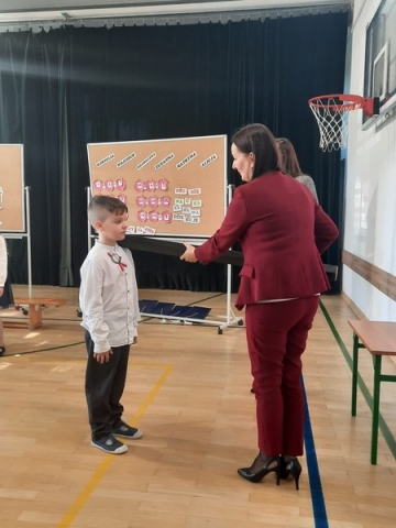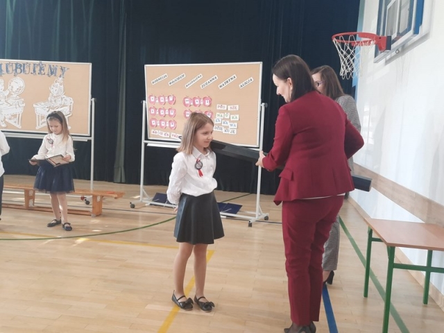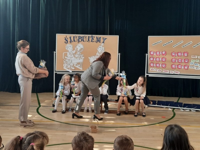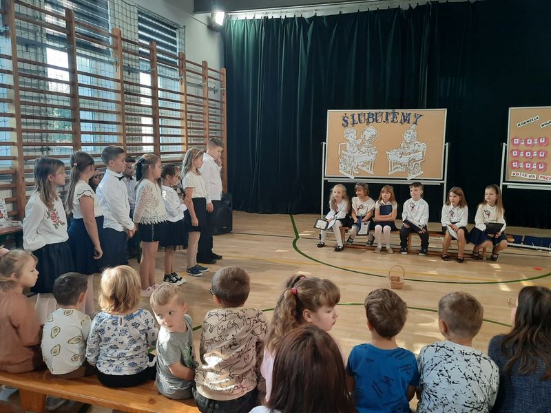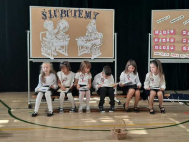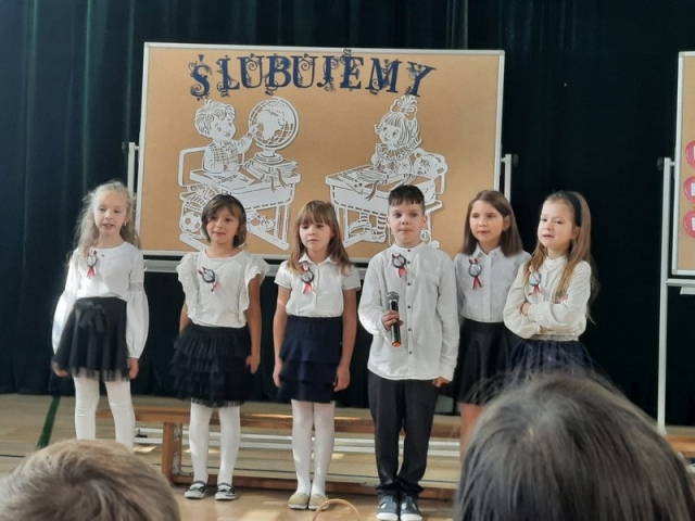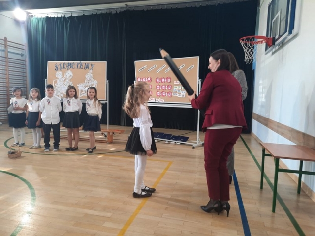 W piątek, 18.10.2024 r.  w naszej szkole odbyła się uroczystość Pasowania na Ucznia. Brali w niej udział nauczyciele, rodzice pierwszoklasistów oraz uczniowie z wszystkich klas. Uczniowie klasy 1 zaprezentowali zgromadzonej publiczności swoje umiejętności recytatorskie, wokalne, językowe oraz matematyczne i polonistyczne. Następnie złożyli uroczyste ślubowanie, po czym Pani Dyrektor Szkoły, specjalnym ołówkiem,pasowała  każdego z nich na ucznia Szkoły Podstawowej w Wandalinie. Były również piękne życzenia i prezenty od kolegów z klasy 3 oraz Rodziców.  Na zakończenie tej części uroczystości był wspólny poczęstunek, na który wspaniały tort upiekła mama Magdy. Wszystkim bardzo smakował. Po południu uczniowie klasy 1  i 3,  ich rodzice i wychowawcy spotkali się w Kinie OCK, gdzie wspólnie obejrzeli film: „Panda i afrykańska banda”. Ten dzień na długo zapadnie w naszej pamięci.