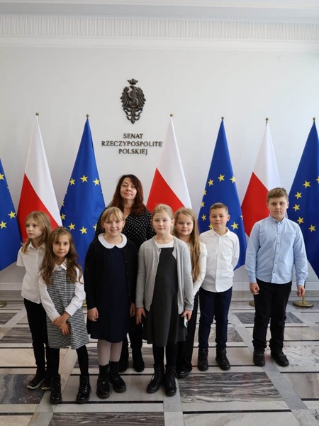 W trakcie wizyty nasi podopieczni wysłuchali wykładu na temat historii polskiego parlamentaryzmu oraz poznali jego dzieje współczesne. Pani przewodnik w niezwykle ciekawy sposób opowiedziała nam o pracy posła, senatora oraz oprowadziła po gmachu Sejmu i Senatu. Uczniowie mieli okazję zasiąść w ławach Sali Posiedzeń Senatu i Sejmu oraz spotkali się z Senatorem RP Stanisławem Gogaczem. Pan Senator skierował w stronę naszych podopiecznych słowa uznania, chwaląc ich wiedzę, dociekliwość i zaangażowanie. Bardzo dziękujemy za serdeczne przyjęcie w murach gmachu przy ulicy Wiejskiej oraz wspaniałą lekcję historii i parlamentaryzmu.