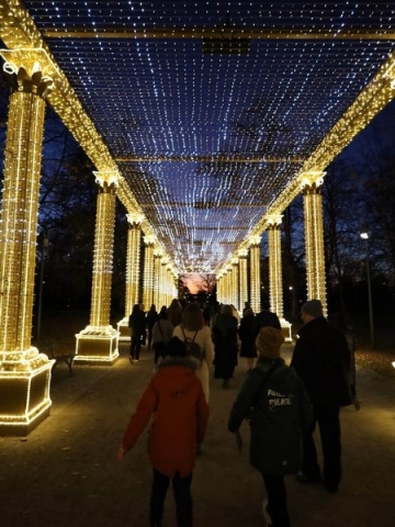 Uczestniczyliśmy w magicznym spacerze po pałacowych wnętrzach oraz królewskich ogrodach zachwycając się bajkowymi światełkami. Królewski Ogród Światła przy pałacu w Wilanowie to wystawa plenerowa, w ramach której tysiące kolorowych lampek ułożono w finezyjne kształty.